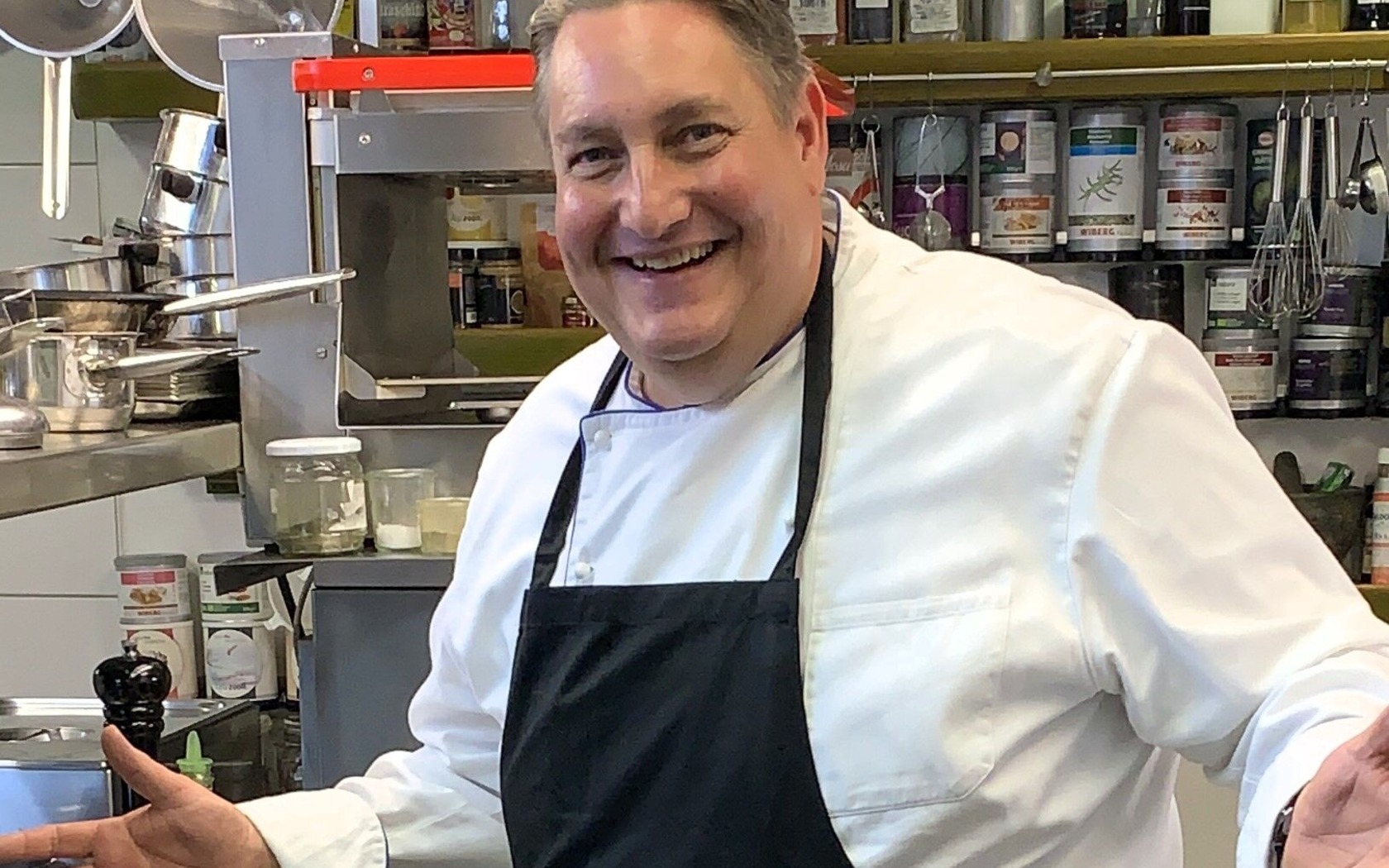 Koch Frank Schreiber begrüßt die Teilnehmer mit einem Aperitif ab 13:30 Uhr. Der Kochkurs beginnt um 14:00 Uhr und endet gegen 17:00 Uhr. Das Menü wird ab ca 17:30 Uhr verspeist. Es gibt viele Tipps und Tricks vom Meister.